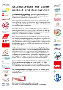 Am Mittwoch, dem 23.2.2022, finden in Gelsenkirchen zwei Demonstrationen statt. Eine Demo findet seit Wochen jeden Mittwoch am HANS-SACHS-HAUS statt, und richtet sich gegen die CORONA-Maßnahmen und die bereits beschlossene, und noch drohende Impfpflicht (ZWANGSIMPFUNG).